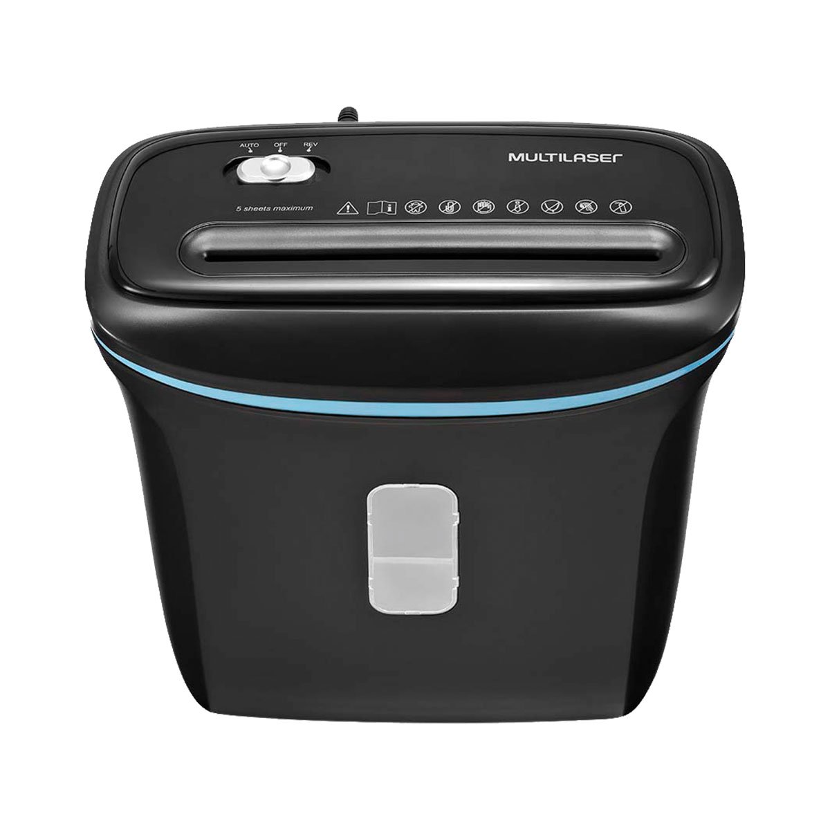 A Fragmentadora Multilaser aceita até 5 folhas ao mesmo tempo.