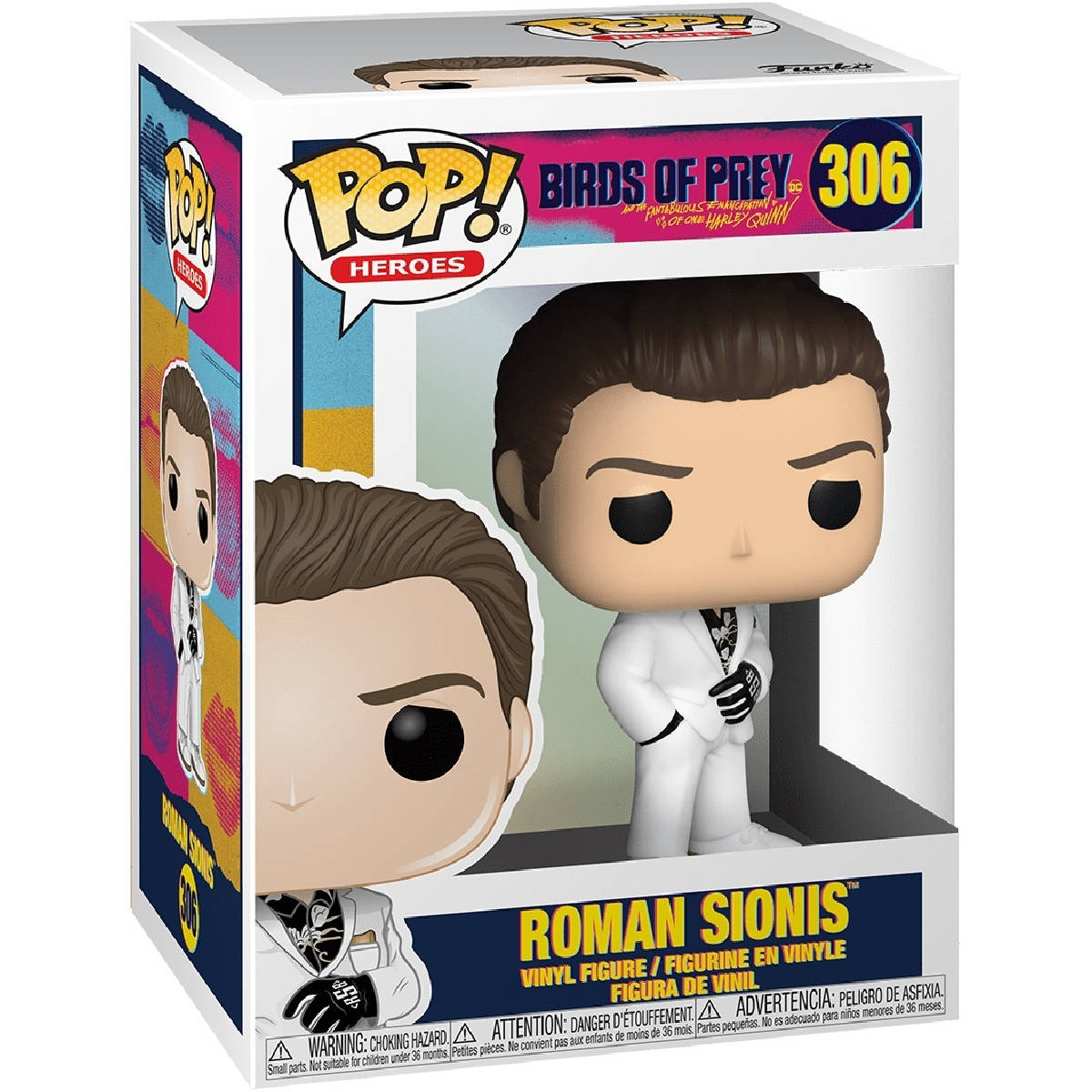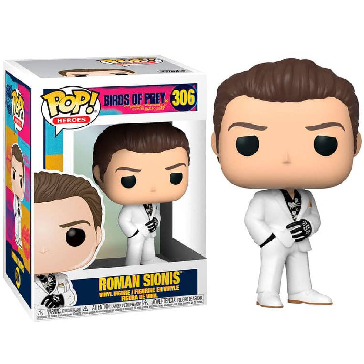 Do filme Aves de Rapina, colecione Roman Sionis vestido em seu terno branco.